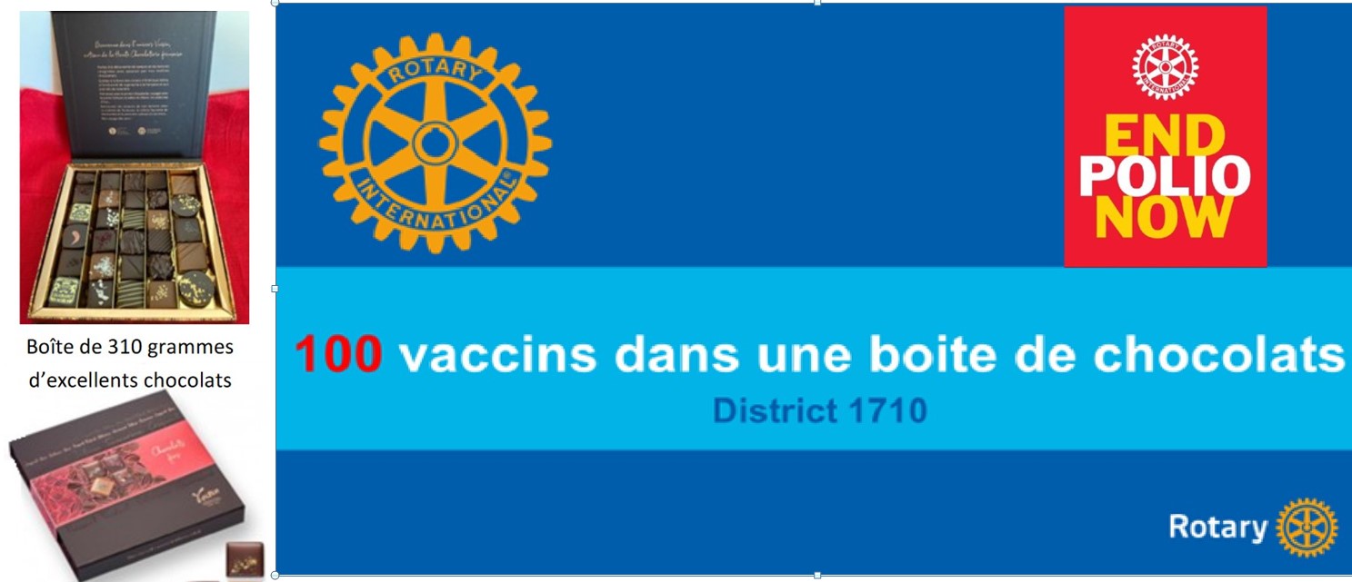 Vous participerez ainsi de manière indirecte à la campagne mondiale de vaccination contre la polio mise en œuvre par le Rotary en collaboration avec la fondation Bill et Melinda Gates.