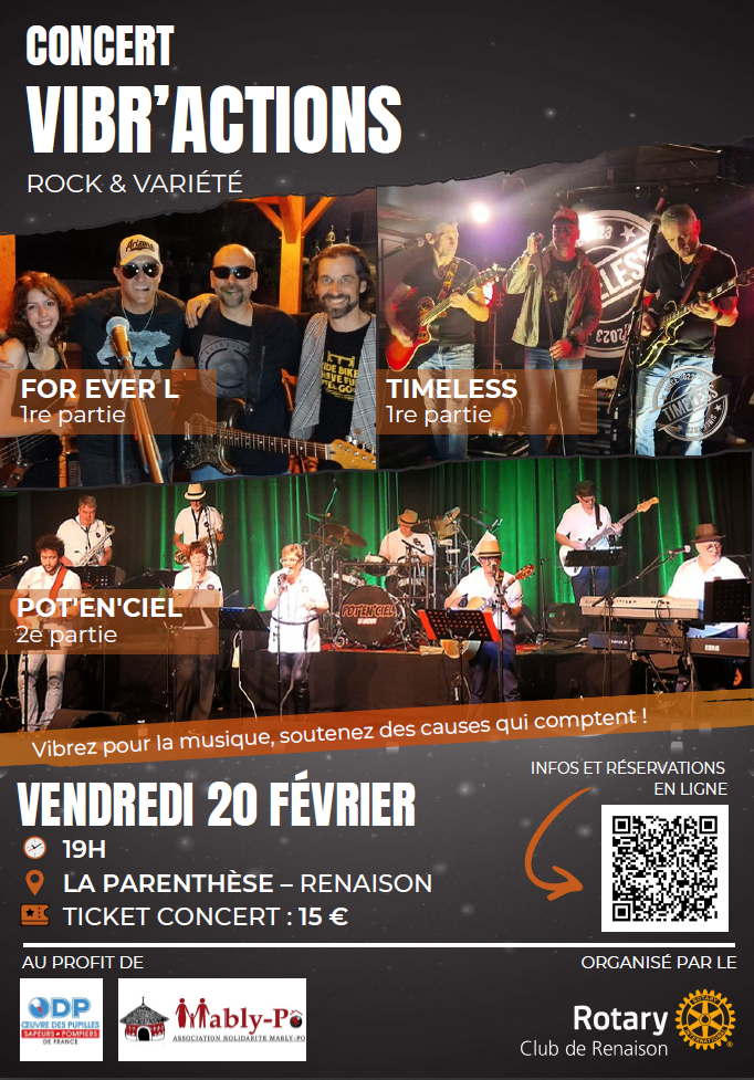 Le Rotary Club de Renaison vous invite à une soirée musicale placée sous le signe du partage et de la solidarité avec le concert VIBR’ACTIONS – Rock & Variété.
